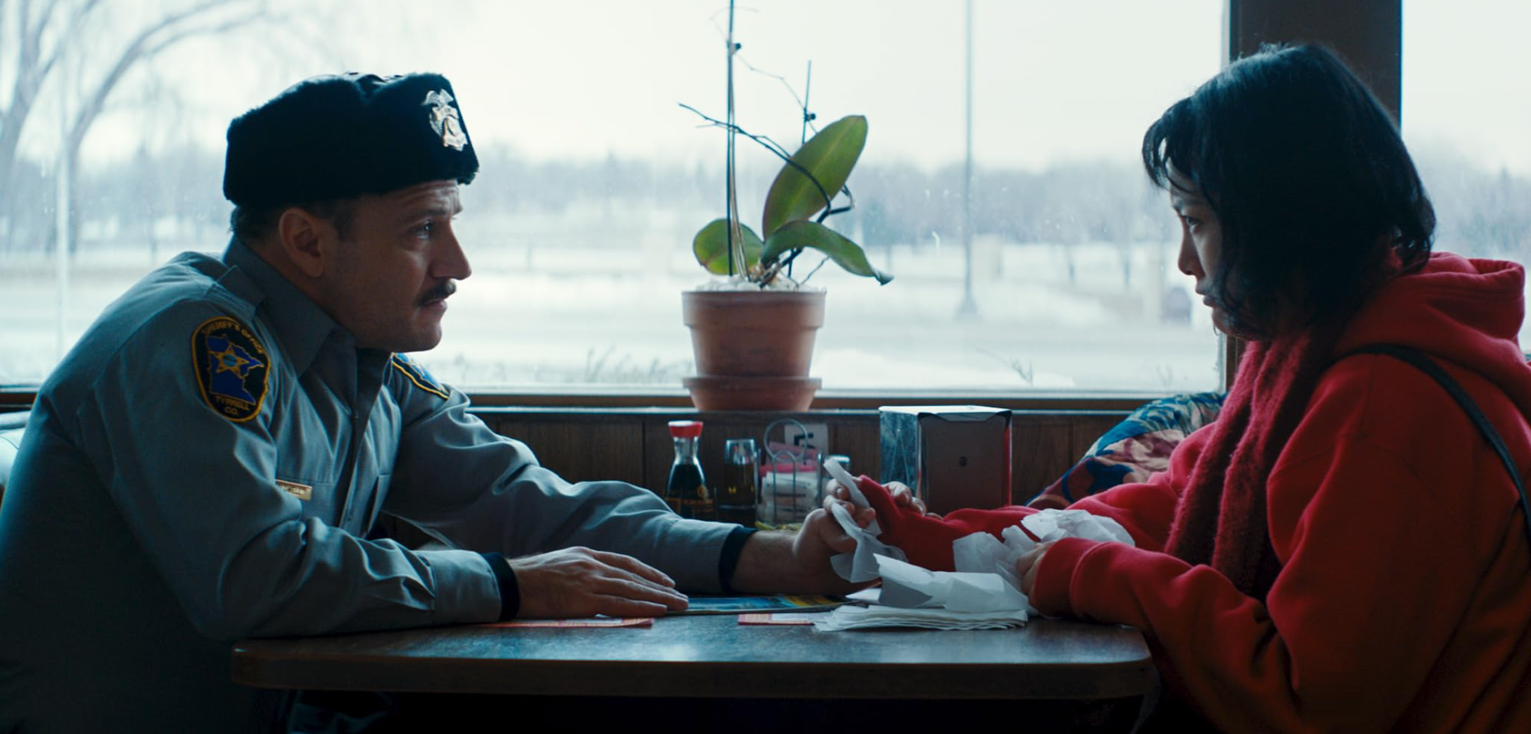 Determined to get to Fargo somehow — she’s sure she will recognize the treasure site, located by a seemingly infinitely long pasture fence, when she sees it — she’s waylaid by missionaries, flat tires, and well-meaning people who try both to help her and to dissuade her from her mission. One old lady who rescues Kumiko from the snowy tundra suggests that instead of Fargo she could show her the Mall of America. A well-meaning cop tries to help, but she runs away when he tries to explain to Kumiko the futility of her quest. (At least they don’t talk like the Minnesotans in the Coen Brothers film, but the cop, played by director-co-writer David Zellner, does commit one bonehead error worthy of the original movie: to aid in communication with the visitor, he takes her to a Chinese restaurant thinking that its manager surely can speak “at least a couple of sentences” of Japanese.)