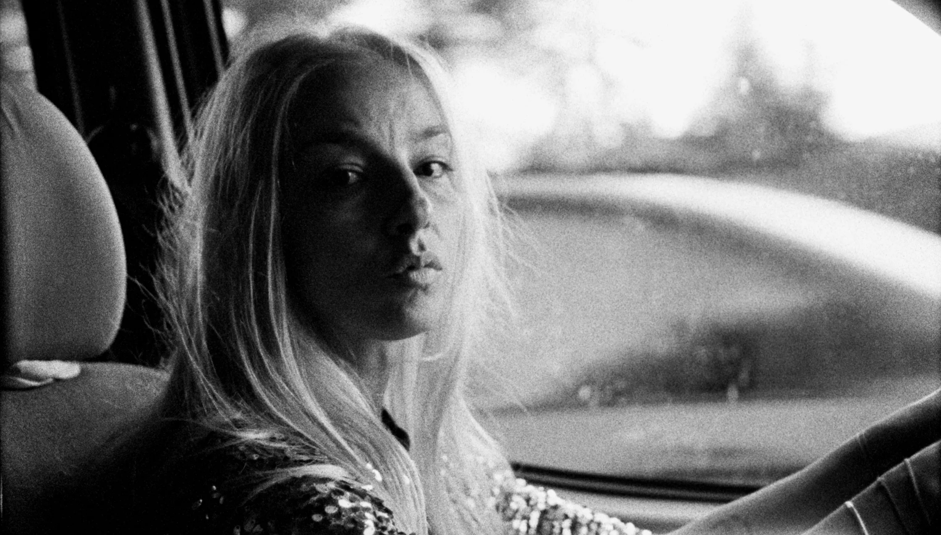There are two other color sections in the movie. The first comes during a scene at the end of Angela’s very long day when, still in the grainy black-and-white that characterizes her everyday existence, she picks up a VIP from the company that is paying her employer to shoot their industrial film. We’ve seen this woman previously, when Angela attends (dozes through) a production meeting and the VIP, a sleek corporate iceberg, skypes in from Vienna.