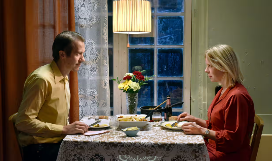The woman, Ansa (Alma Pöysti), has a small apartment in a shabby courtyard hidden away in one of those districts on the outskirts of a European capital that you see only from a train window. Each day she returns home and turns to her only companion, a radio that spits out news of the Russian invasion of Ukraine. (The news, the weather, and the times of sunset tell the viewer that the film begins in March or April 2022. No one’s wearing COVID masks but the war news is ubiquitous, and would be of particular interest, of course, in a country that borders Russia.) She seems very lonely.