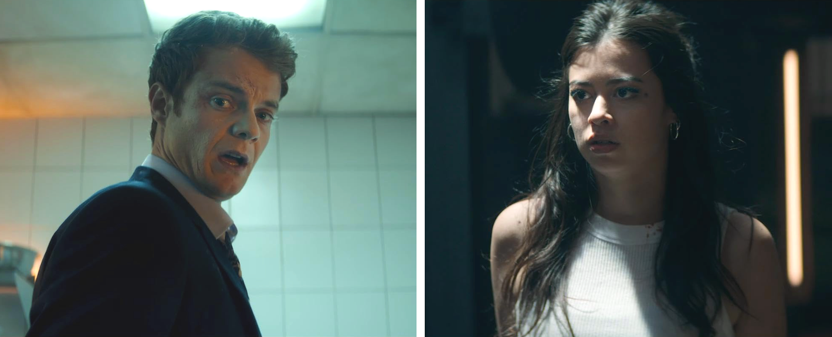 At least that’s how Nate (Jack Quaid), a mild-mannered bank assistant manager, approaches life: with extreme care. So when the extremely hot new teller Sherry (Amber Midthunder, who resembles Aubrey Plaza only with really plush lips) comes on to him and gets him to live a little, he's a sucker for her charms. For the first time ever, he eats cherry pie (“This is pie?! Oh my god!”), and later on the date, metaphorical cherry pie. (This isn’t shown, but the character of Nate is written as a thoughtful, nice guy, so it seems like he’d be down for it.) The next day, the bank they both work at is robbed by a trio of really violent guys in Santa suits (like that’s never been done before). They get Nate to give them the vault combination by threatening to shoot Sherry before grabbing all the cash and taking her hostage.