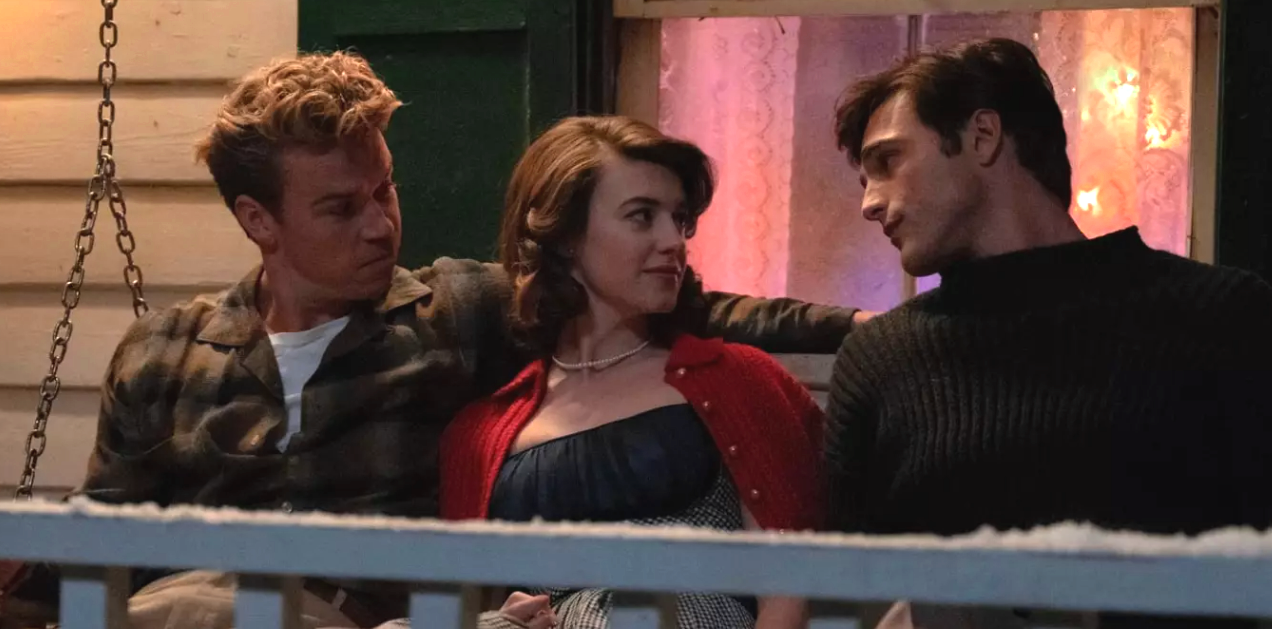 Two brothers are on leave from the Navy during the Korean War. The older brother Lee (Will Poulter) is boffing his fiancée Muriel, as the younger brother Julius (Jacob Elordi) is headed their way. Lee is conventional, able to see little in his future besides an American Dream of a house, a wife, and a job; Julius is not so much a nonconformist as he is an inhabitant of “another world than us,” to use Lee’s phrase.