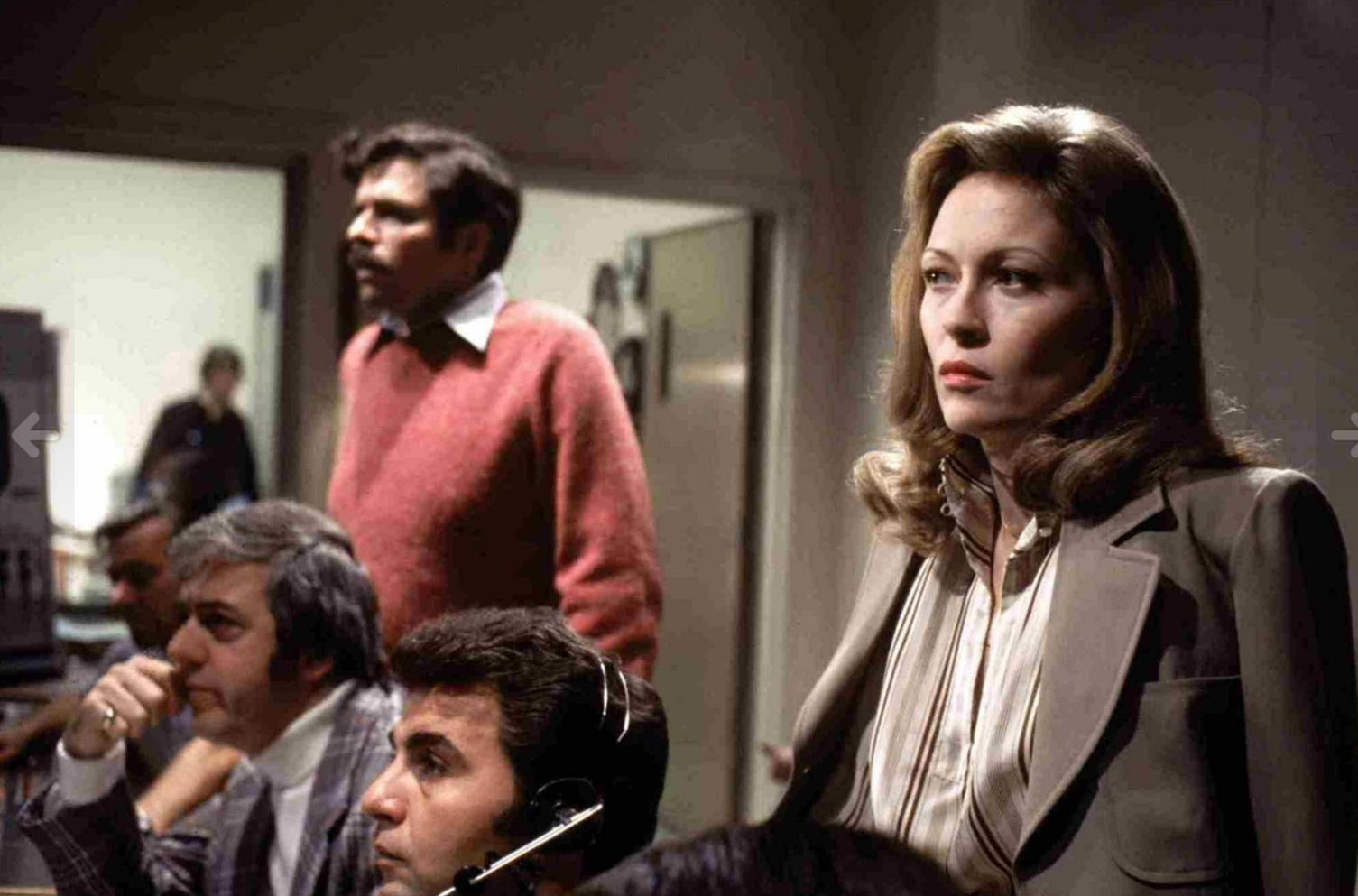 But while it may have incisively analyzed the politico-economic status quo, "Network" fails in its imagination of gender relations. The news executive Schumacher leaves his wife of many years for the much younger, aggressive network programming exec Diana (Faye Dunaway). Schumacher (played by William Holden, 23 years older than Dunaway, but four years younger than Beatrice Straight, who played his character's wife; all three won Oscars) has no choice in the matter; as the film's dialogue attests: when he leaves his wife for Diana, and finally leaves her, he's following a script provided for retirement-age white men of the 1970s. For her part, Diana embodies the mid-70s version of the successful "feminist" woman: powerful, accomplished, stylish, ambitious, and threatening to the older men who realize she has her sights on their jobs.