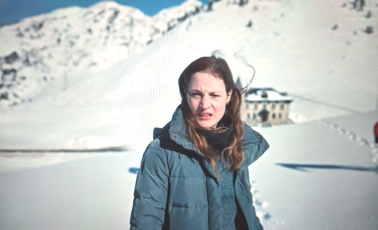 Krieps fully inhabits each of the facets of Clarisse’s character: the tour guide who inappropriately scolds a man who, in her opinion, is bullying a son the same age as her own; the drunken floozy; the unmoored highway driver who chats up strangers at a rest stop; the hovering ghost still invested in her children’s lives; and the woman driven mad when mountain rescue workers find — after months during which all the snow that buried them finally melts — the dead bodies of her family. And for the most part she chooses quiet ways to express her longing, her anxiety or mourning. As I said at the beginning, she manages to convey much with her face. She is always the center of whatever scene she is in.